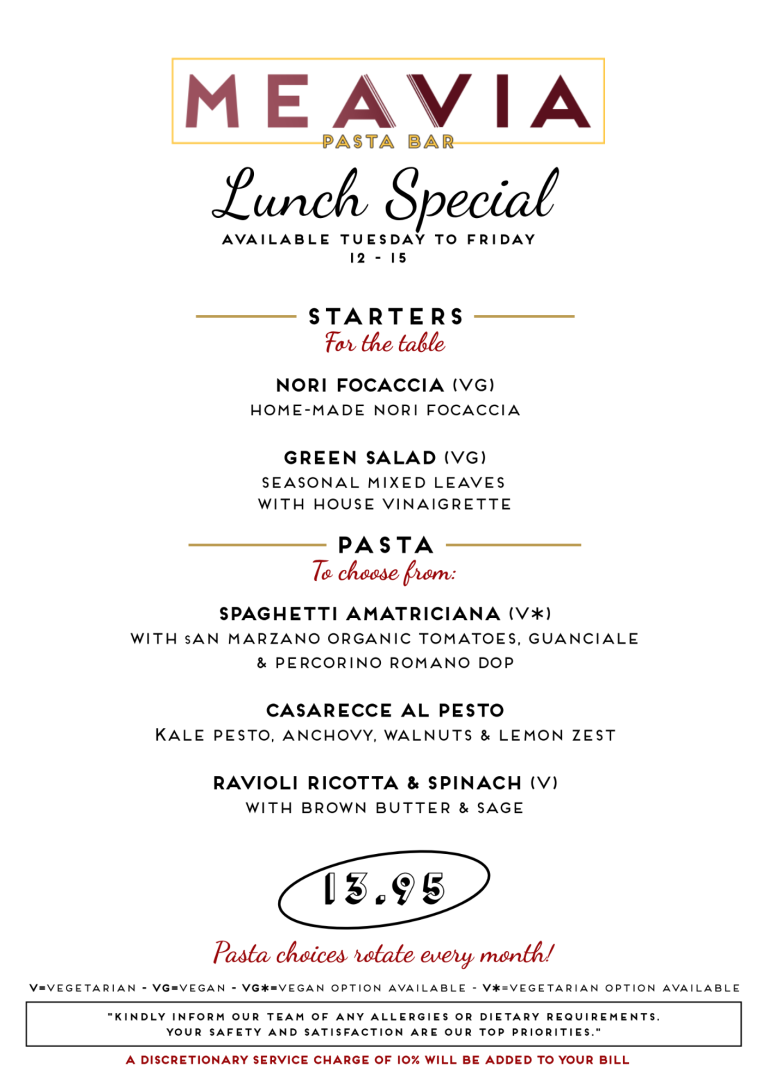 Our pasta selection will change every month, keeping things exciting and in tune with the seasons.